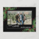 Unique, classic, trendy, pretty and decorative Holiday card. Cute Happy Holidays greeting text and room to customise or personalise with a photo, family name (or individual names) and message of your choice. Framed by Burgundy wine red berries and dark green foliage wreath bouquets on a classy black background.