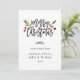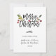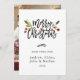 Modern Merry Christmas script card features red berries, green botanical leaves with a family photo on the back.