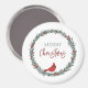 Red Berries Wreath and Red Cardinal Christmas Magnet