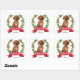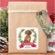 On these Holiday correspondence stickers, a watercolor portrait of a cute red Dachshund is surrounded by a red berry holly wreath. At the bottom is a red banner with your custom Christmas greeting, and your signature is in green beneath it.