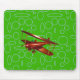 Red Bi-plane on Green Circles and Loops Mouse Pad