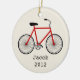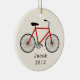 An ornament featuring an illustration of a red bicycle. Personalise with your name under bike.