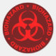 Biohazard - bold red lettering and biohazard symbol with a dark red background.