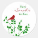 These cute and modern stickers feature a red bird on a green branch and the name of your choice. Perfect for attaching to Christmas baked goods and other holiday food gifts. Makes a great gift for those who love to bake and make canned goods, etc.