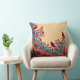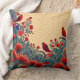 Red Birds, Floral Abstract Folksy Swirls Cushion