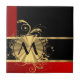 Personalise this chic elegant plain red and black coloured modern striped pattern and black background and gold metal look ornate vintage baroque monogrammed swirl circle design on a black stripe by adding your monogram initials to the template to make a unique modern custom personalised gift. PLEASE NOTE the gold is not metallic.