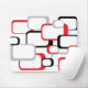 A cool retro inspired design of red, black and grey squares against a white background on a mousepad
