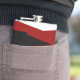 The flask itself is fine. It’s a cheap flask, obviously bought in bulk, however am prepared to overlook that. Given that it is a personalized item, I would have liked to have seen gift boxing instead of the generic packaging. Terrible printing, and/or quality. It’s a cheap, tacky vinyl. It is not cut straight and is also applied in a way that it is overhanging the bottom, causing the glue to catch on items and it will eventually roll and tear, damaging the wrap.