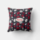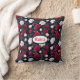 Red, black, and white roses cover this beautiful Goth throw pillow. Personalise with your name in white blackletter font inside a black and white oval.
