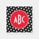 Pretty black and white polka dot pattern with red monogrammed circle.