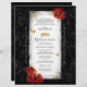 Create your own dramatic and elegant scroll invitations with a luxurious black, white, and red colour theme, enhanced by your choice of faux metallic champagne yellow gold or silver details. With this easy, custom template, you can craft elegant DIY scrolls that roll up beautifully—whether you choose to add a dowel, ribbon, or keep it simple for a refined mediaeval or storybook-inspired look. Featuring original artwork by Raphaela Wilson, the fairy tale design includes red watercolor roses, whimsical gold or silver butterfly confetti, a regal queen’s crown / princess tiara, and an intricate filigree border.