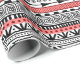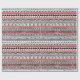 Red and white background with black pattern of lines and triangles. Very southwestern