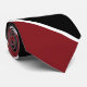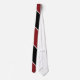 You'll look great in this red and black-striped tie featuring thin white stripes.