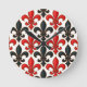 Red Black Baroque Fleur-de-lis Pattern Design Round Clock