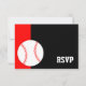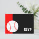Modern red and black baseball themed Bar Mitzvah RSVP response card.