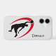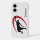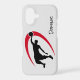 This phone case designed for the basketball player or fan features a black silhouette basketball player dunking the ball, with a red swoosh design behind him. A text field allows you to personalise it. The image and text are placed on a light grey background. *Clip art used in this design is copyrighted by Encore Software, Inc., which permits use to its licensors. All rights reserved.
