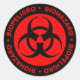 Biohazard - Biopeligro - bilingual red and black English-Spanish biohazard symbol sticker.