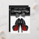 Elegant red and black high heel shoes with diamond trimmed black bow tie woman's 21st birthday party invitations. This chic and modern high heel shoe red and black birthday party invitation is easily customised for your event by simply choosing the "Customise it!" button to begin adding your event details, font style, font size & colour, and wording. Please note - all of the stickers, cards and invitation designs you will find on Zazzle are printed graphics with no actual jewels, bows, raised, embossed, or added parts or pieces.