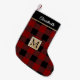 Rustic, red and black buffalo check plaid Christmas stocking personalised with a monogram and name in your choice of font styles. ASSISTANCE: For help with design modification or personalisation, colour change, resizing or transferring the design to another product, contact the designer BEFORE ORDERING via the Zazzle Chat MESSAGE tab or email makeitaboutyoustore@gmail.com.