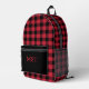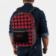 Bold red and black buffalo check pattern features a black front pocket with your custom monogram in red. Add your initials in the sidebar.