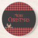 Red Black Buffalo Check with Peeping Reindeer Coaster