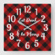 A red and black buffalo check background wall clock with the words Eat Drink and Be Merry. A unique gift for special days such as a birthday or simply because you or your special person love the buffalo check design.