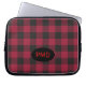 Red Black Buffalo Plaid Check Monogram Initials Laptop Sleeve