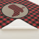 This attractive rustic sherpa blanket features a red and black buffalo plaid pattern. At the centre is a tan circle banner with a matching red and black plaid silhouette cowboy boot.