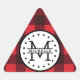 Red black Buffalo Plaid Lumberjack Name Monogram Triangle Sticker