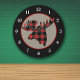 Here's an attractive clock for the wildlife or hunter enthusiast. At the centre is a red and black buffalo plaid silhouette moose head. The image is placed on a light tan background, which is surrounded by a black circle with white numbers, making the clock easy to read.