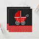 A cute baby carriage is featured on this red and black girl baby shower invitation. Trendy and modern -- Easily personalise for your baby shower!