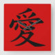 Black Chinese love symbol on a bright red background. Colour requests are accepted if your favourite colour is missing.