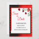 Red & black Cute Ladybugs | Watercolor Flowers Save The Date