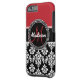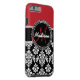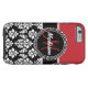 Personalised Black and White Damask pattern with your monogram initial and name with red accent colour. Design by DamaskGallery©. Graphics licensed for use. Girly, fun, monogrammed case for her.
