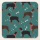 Red & Black Dobermans in Scarves Winter Pattern Square Paper Coaster