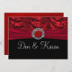 Hot red and rich black with a draping baroque look, complete with a red velvet look ribbon and faux jewel and glitter ribbon gem. Great way to make an announcement.