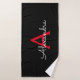 Red Black Girly Script Monogram Name Modern Bath Towel