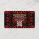 Bold fractal lace design in red, black color scheme, trimmed in gold - plenty of space to add your details - great businesses and occupation within the entertainment, creative artist, performer, costume designer, and all within the funky gothic goddesses and also for jewellery, fashion, + more. Fully customizable, add your image and include QR code ready for your website address