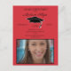 Red graduation party invitation photo postcard with a black graduation cap.