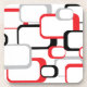 A cool retro inspired design of red, black and gray squares against a white background on a set of cork coasters