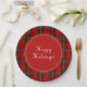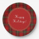 Red Black Green Cosy Plaids Happy Holidays Paper Plate