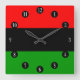 Square clock with the red, black, and green Pan African flag with white numbers. This flag is also known as the Afro-American flag and Black Liberation Flag. Customisable.