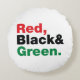 Red, Black & Green. Round Cushion