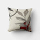Stylish throw pillow features an artistic abstract design in a burgundy red, black and grey colour palette on an ivory background. A stylish modern design features watercolor leaves and a geometric circle composition with an inquisitive hummingbird in the upper left hand corner. This modern composition is built on combinations of repeated leaves and circles, which are overlapped and interlaced to form an intricate design. The grey, burgundy red, black and gold accents are layered and interspersed to give perspective and depth; design elements that compliment the lighter ivory background.