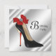 Elegant designer high heel shoe with printed diamond bow girls & womans red, black & white birthday party invitations. Customise the front and back with your party details, font style, colour and size.