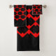 Red Black Interlocking Geometric 3 Piece Bath Towel Set