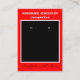 Handmade Jewelry by Name in white against red background. Crafted with Love written in black script (keep or insert short tagline, or delete to leave area blank). Name will appear on front and backside. Two Small Circles against black and white framed background. NOTE: Circles are not pre-cut, you will need to use a small hole punch to make clean cut holes, to then place your Earrings in. Backside has small red heart. Insert telephone number, email address, website, social media handle. Insert Your Business Website QR Code for customers to Shop 24/7, or delete as needed. Original Design by TamiraZDesigns.