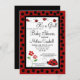 Ladybug Baby Shower Invitation. Here's a cute Red and Black Polka Dot Ladybug Baby Shower Invitation Template for you to create your own ladybug baby shower invitations. Just enter your baby shower wording into the template fields. The back of the invitation is plain black, but if you need to add more information, like directions, you can use the "Customise It" button to add text to the back. This invite has lady bugs crawling across the top and also a bigger ladybug and flower at the bottom of the invitation. The background is a red and black polka dot pattern design. Ladybug clip art designs by Kika Esteves at MyGrafico.
