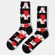 Red Black Love Hearts With Black White Stripes Socks