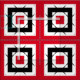 Seamless abstract geometric pattern featuring geometric shapes in red, black and white. Texture with optical illusion effect.